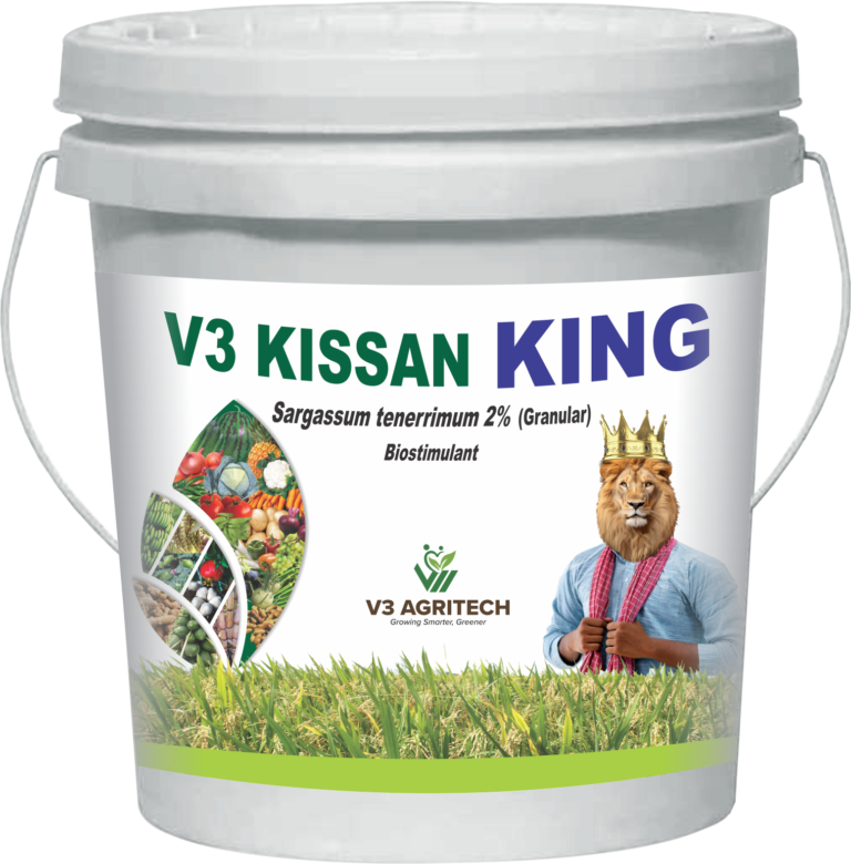 Kisan King is a Sargassum tenerrimum seaweed extract that improves soil health, enhances germination and root growth, boosts nutrient uptake, and increases crop resilience and yield.